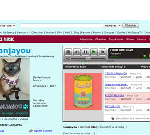 Aujourd’hui c’est l’anniversaire de mon chat! Et oui je sais c’est bête … pour le fêter je vous inviter à  le lui souhaiter sur sa page MYSPACE.com/Ganjayou . Il a déjà  une carrière…